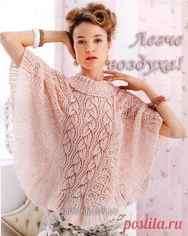 Нежное ажурное пончо спицами. Описание, схема вязания