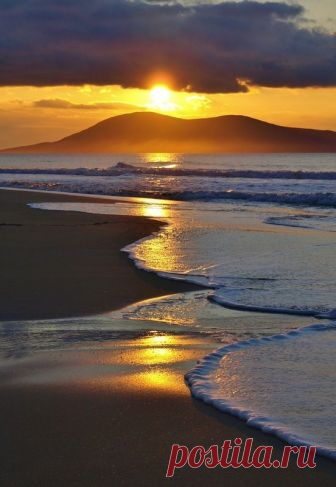Sunset over Luskentyre beach, Isle of Harris, Scotland.
