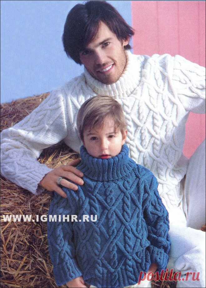 Для взрослого и юного мужчин. Теплые зимние свитеры с косами. Спицы