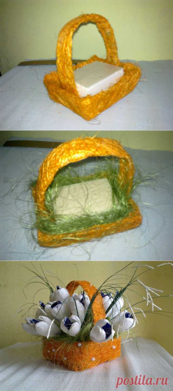 Как сделать корзинку для букета из конфет своими руками. Фото мастер-класс. - Buket7.ru