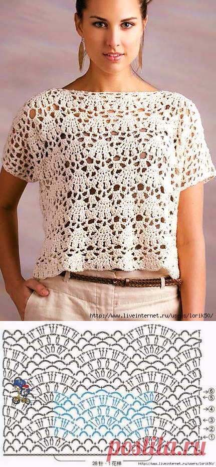 Топ с диагональными ажурными полосками. Крючок. - ВЯЗАНАЯ МОДА+ ДЛЯ НЕМОДЕЛЬНЫХ ДАМ - Страна Мам