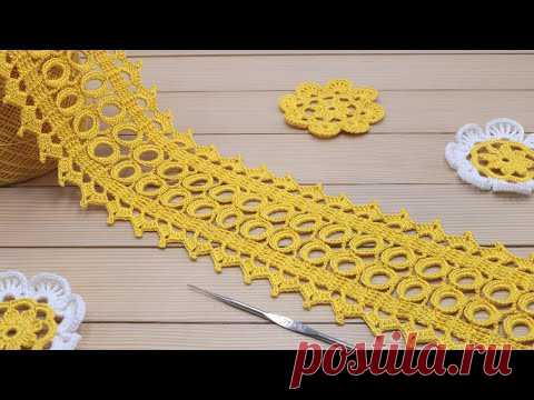 Ажурное ЛЕНТОЧНОЕ КРУЖЕВО вязание крючком мастер-класс Crochet Lace Braid Ribbon Tape Tutorial