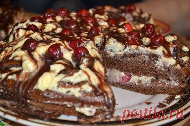 Торт "Вишневый поцелуй" Этот тортик мне очень-очень понравился)) Очень мягкий корж, нежный крем, хорошая пропитка.. Все просто замечательно. Я думаю, что сочетание сладкого с кислым всех удовлетворит. Стоит приготовить. Приготовим его)) Корж: Яйцо – 2 шт. Мука — 1,5 стак. Сахар – 0,5 стак.; Молоко сгущенное – 0,5 бан Сметана — 200 г Сода (погасить) — 1 ч. л. Какао-порошок – 2 ст.л. Крем: Яйцо – 1 шт. Мука- 1 ст.л. с горкой Сахар – 3 ст.л.; Молоко сгущенное – 0,5 бан. Молоко — 1 стак.…