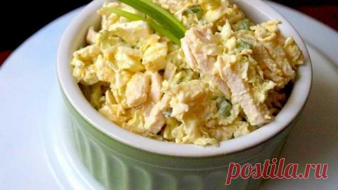 Ставим отваривать куриное филе (для аромата добавляем морковку, репчатый лук и лавровый лист. Бульон можно потом использовать для супа). Шинкуем пекинскую капусту. Мелко крошим зеленый лук. Огурец нарезаем соломкой. После того как наше куриное филе отворилось, нарезаем мелким кубиком. А так же от...