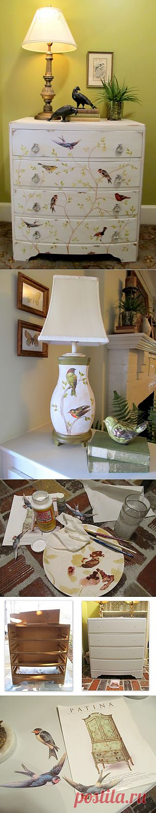 Комод и лампа, выполненные в одном стиле, МК, декупаж.