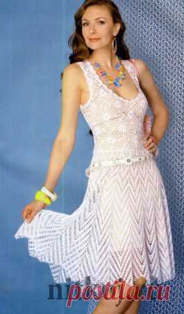 Платье крючком из мотивов с юбкой кроя солнце-клеш » Ниткой - вязаные вещи для вашего дома, вязание крючком, вязание спицами, схемы вязания