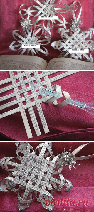 Винтажные снежинки из книжных страниц (не нужной макулатуры) =)