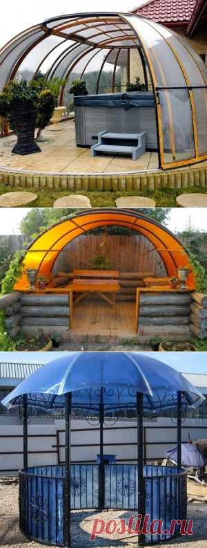 Тенты на даче — самый простой способ защитить себя от палящих лучей солнца или, наоборот, осадков, проводя время на свежем воздухе. Далеко не у всех на даче есть постоянная беседка, место, время и возможность ее построить. А достоинство тента в том, что его можно перенести в любое удобное место — на газон или к пруду, быстро ставить и легко убирать, можно взять с собой в машине куда угодно.