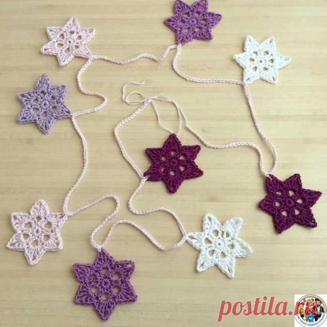 Вязаные снежинки. Из них можно делать новогодние венки.