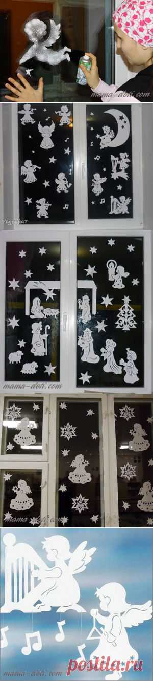 Ангелы из бумаги, трафареты для окон » Мама и дети