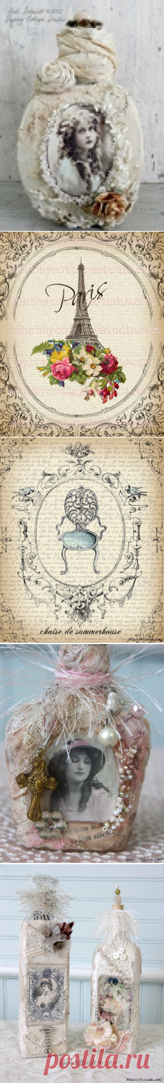Винтаж с декупажем ваз и бутылок от Laura Carson
