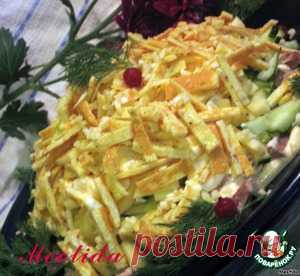 Колбаса режется соломкой, сыр трется на мелкой терке, помидоры крошатся кубиками, петрушку мелко покрошить, все ингредиенты смешиваются и заправляются майонезом. Вкусно необыкновенно.