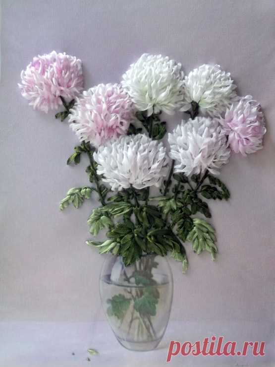 Роскошные хризантемы, вышитые лентами — Рукоделие