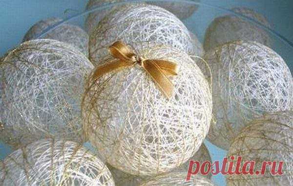 Праздничные шары-паутинки из ниток. Мастер-класс