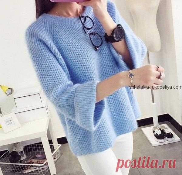 Стильный джемпер из мохера связан жемчужной резинкой. Спицами. / Шкатулка рукоделия. Сайт для рукодельниц.