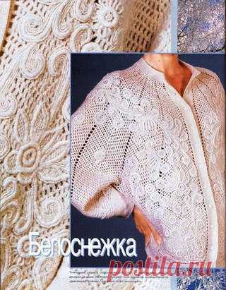 ЖАКЕТ "БЕЛОСНЕЖКА", СВЯЗАННЫЙ ОТ ГОРЛОВИНЫ