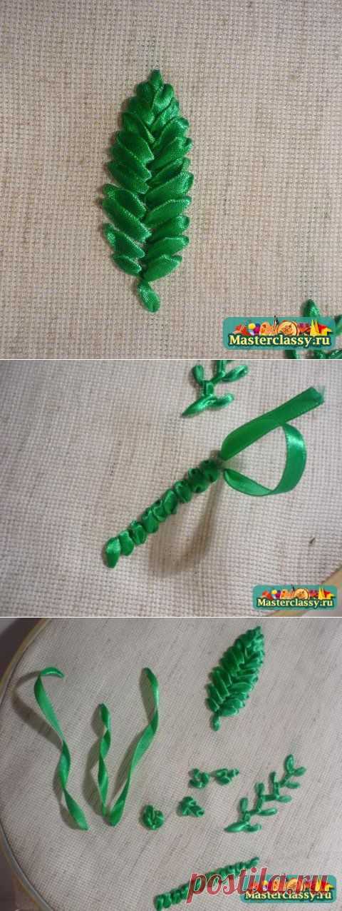 Вышивка лентами для начинающих. Листья. Мастер класс