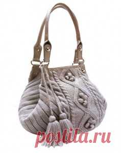 Вязаная сумка спицами с аранским узором и отделкой из кожи
