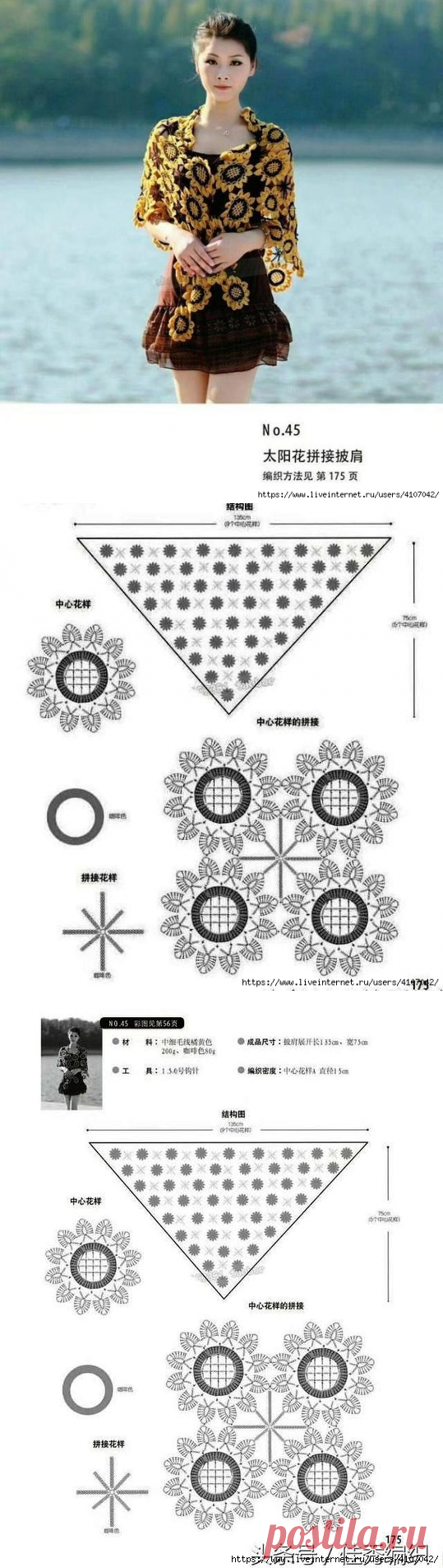 ШАЛЬ С МОТИВАМИ "ПОДСОЛНУХ". КРЮЧОК
