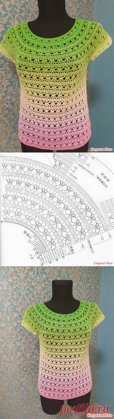 Ажурная блуза крючком. ( Круглая кокетка). - Вязание - Страна Мам