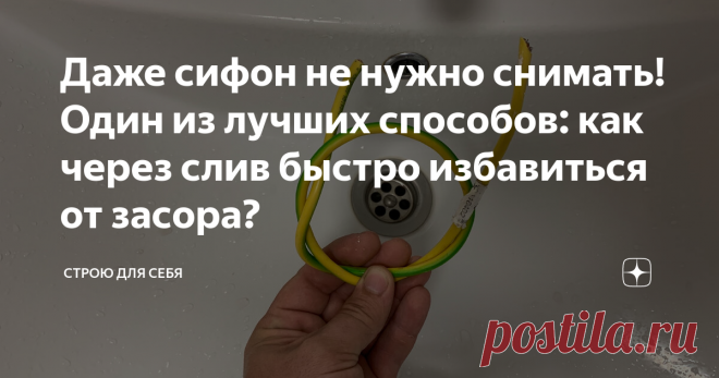 Даже сифон не нужно снимать! Один из лучших способов: как через слив быстро избавиться от засора? Приветствую Вас, уважаемые гости и подписчики канала "Строю для себя"! Многие жильцы рано или поздно сталкиваются с засорами раковин, кухонных моек или ванн. Безусловно, засор это неприятный факт и для большинства современных моек использование вантуза становится невозможным из-за особенностей системы слива воды. В большинстве случаев, посредством вантуза не получается создать...