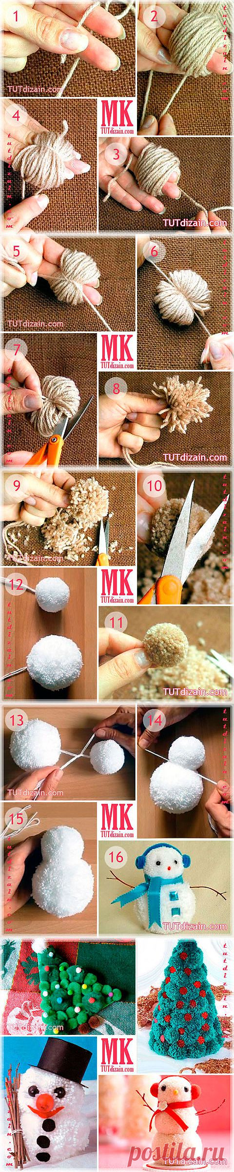 Украшение на ёлку - снеговик из помпонов | СВОИМИ РУКАМИ