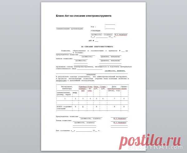 Акт на списание электроинструмента - Оборудование - Электроинструмент