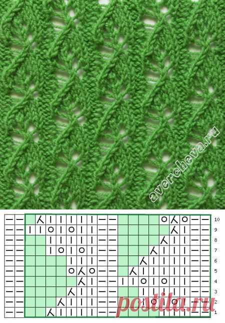 Ажурные листочки | каталог вязаных спицами узоров