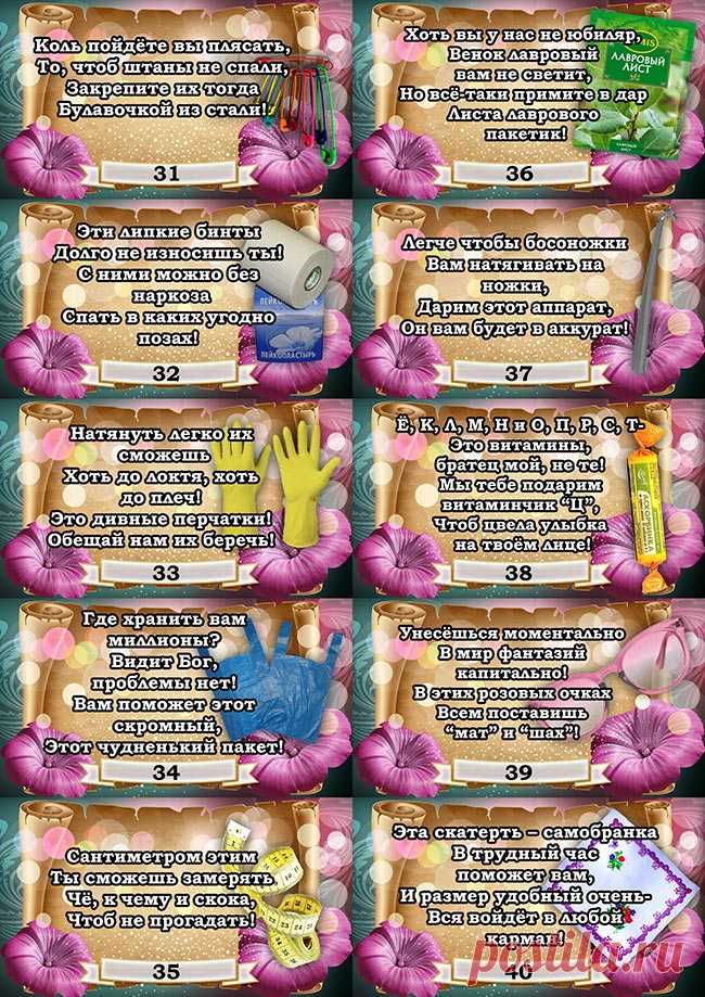 Шуточная беспроигрышная лотерея в стихах на 50 лотов - Шаблоны билетов / Лотерея на юбилей, день рождения / Скачать и распечатать