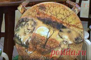 Видео мастер-класс по декупажу: Декор табурета Африка. Двушаговый кракелюр
