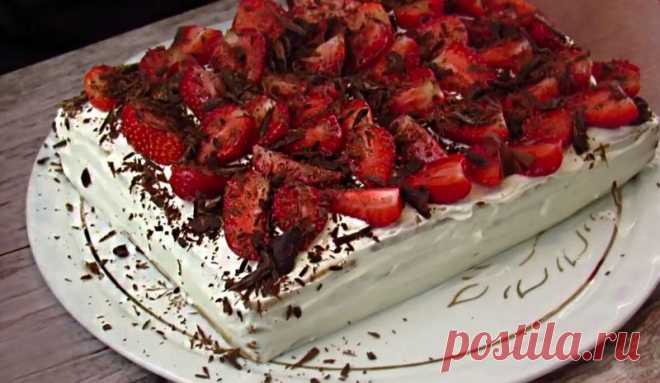 Чтобы сделать этот десерт, не нужно греть духовку. На вкус торт получится хрустящим, а его нежный крем будет таять во рту.