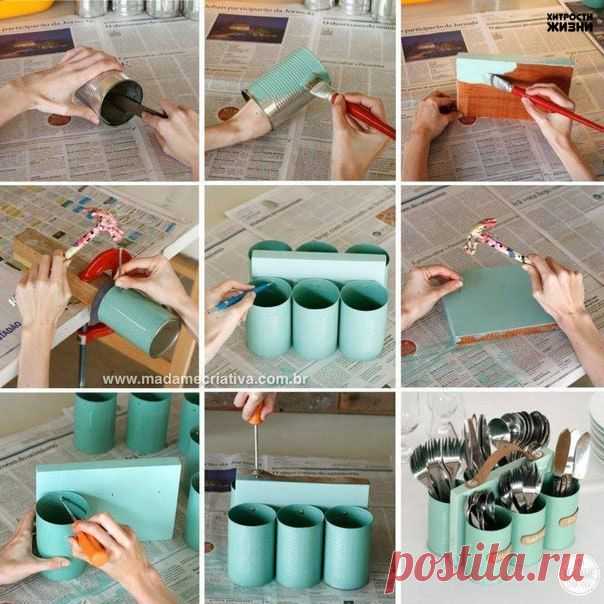 Как сделать кухонный органайзер из консервных банок