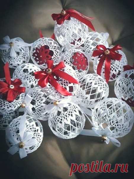 Хрупкие, но очень красивые ёлочные шарики из категории Интересные идеи – Вязаные идеи, идеи для вязания