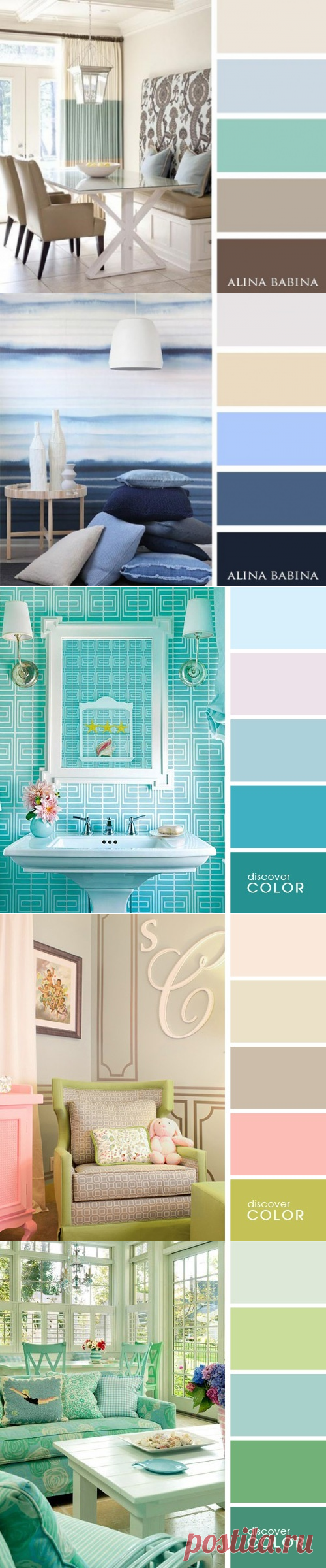 Как сочетаются в интерьере голубой, зеленый и синий