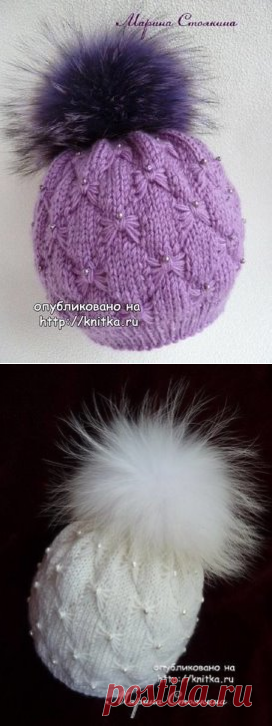 Ажурная шапочка с ушками, связанная спицами. Схема