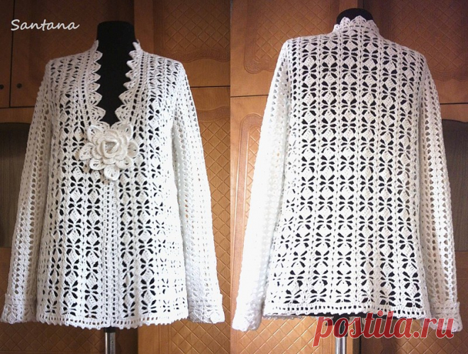 Белый жакет с брошкой (большой размер): Дневник группы «ВЯЖЕМ ПО ОПИСАНИЮ»: Группы - женская социальная сеть myJulia.ru