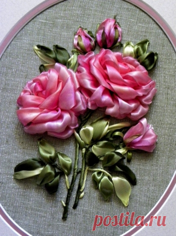 Как вышить миниатюру «Розы» лентами — Рукоделие