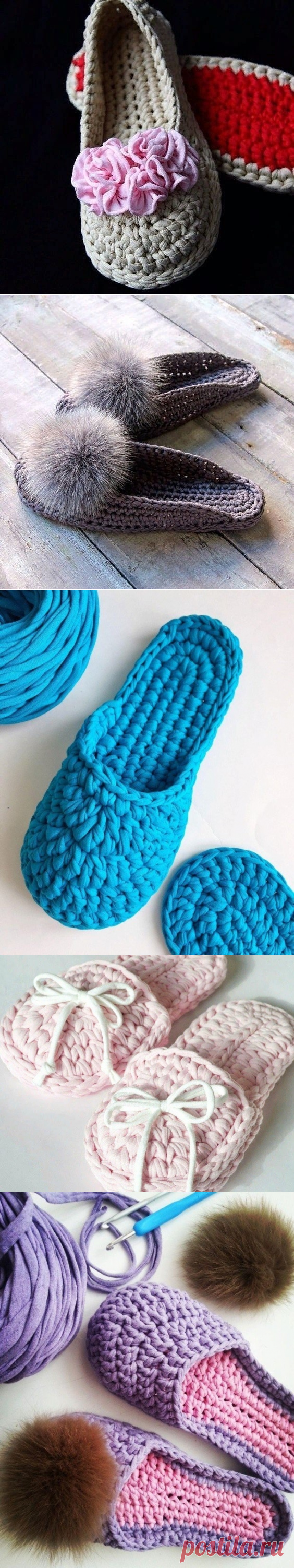 В копилку любителей вязания. Тапочки из трикотажной пряжи.