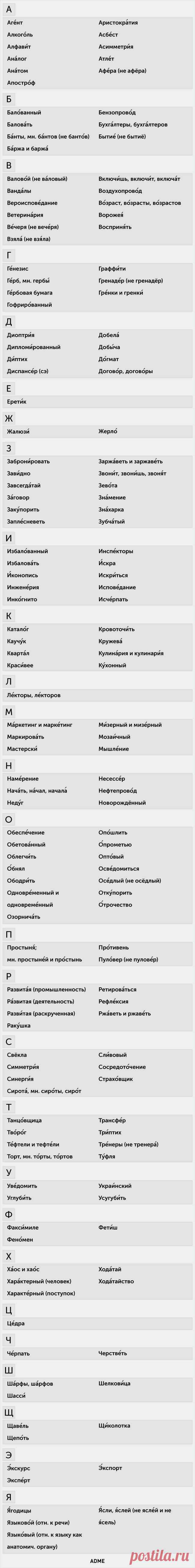 150 слов с правильным ударением
