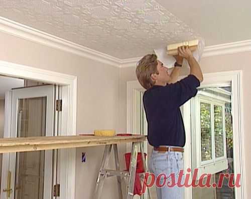 Как клеить обои на потолок своими руками | Ремонт квартиры своими руками