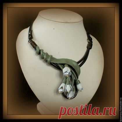 Купить Колье из кожи Вирида - украшения из кожи, колье ручной работы, колье из кожи