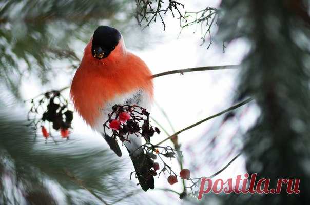 Снегирь. Автор фото — Елена Андрианова: nat-geo.ru/photo/user/296130/