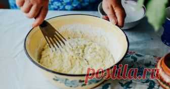 1. Для теста 1 в миску просеять муку с разрыхлителем, добавить сметану и вымесить тесто.