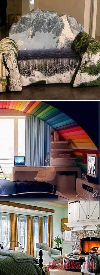 Креативный диванчик, потолок-радуга, идеи скрытого размещения телевизора и другие полезности.