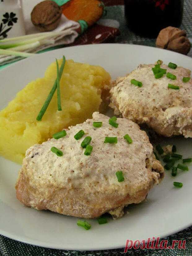 Вкуснейшая курочка в пряном сметанно-ореховом соусе! Мне безумно понравилось! Рекомендую попробовать и вам!!! Ингредиенты: 800 гр. курицы (любых частей, у меня бедра) 1 стакан грецких орехов 300 гр. сметаны 15% 3 зубчика чеснока соль, перец и хмели-сунели по вкусу растительное масло для жарки