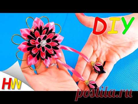 Мастер-класс Канзаши. Цветы из лент. Заколка для волос.Цветок Канзаши/Hairpin with Kanzashi Flower.