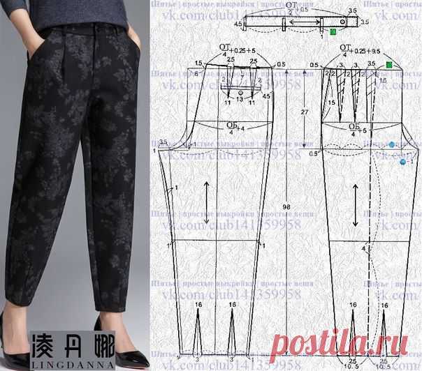 Брюки-бананы с высокой талией.#простыевыкройки #простыевещи #шитье #женскиебрюки #брюкибананы #выкройка