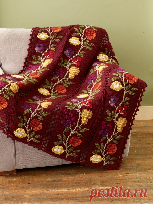 Двухцветный узор из промежутков между тунисскими столбиками.
