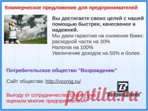 Коммерческое предложение предпринимателям. | Потребительское общество "ВОЗРОЖДЕНИЕ"