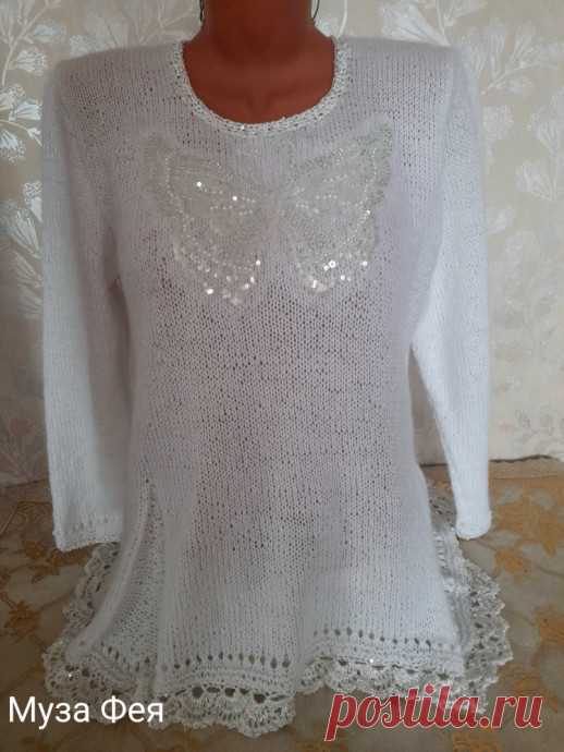 Джемпер с бабочкой спицы+крючок